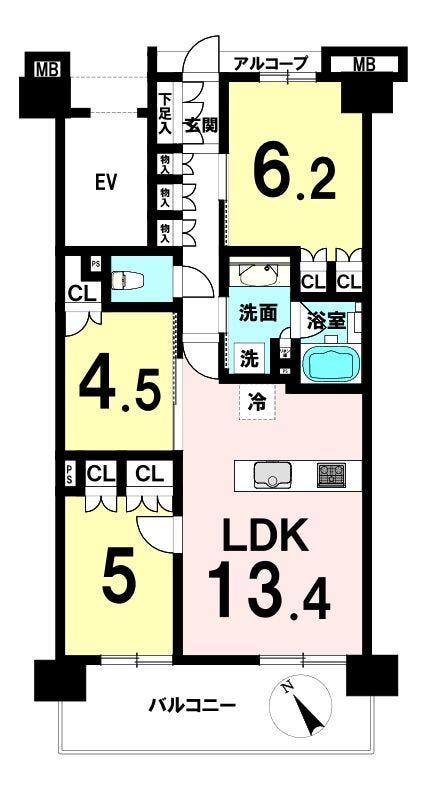 専有面積 壁芯 65.13㎡ 所在階 10階建/9階部分